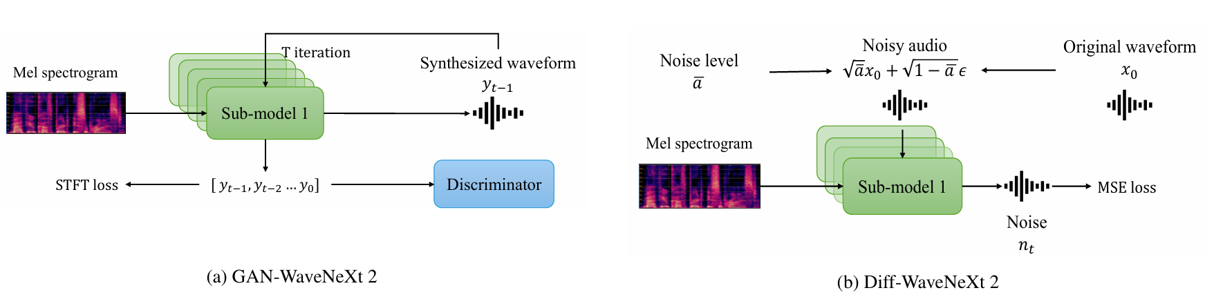 - 논문은 WaveNeXt architecture를 기반으로 GAN, diffusion framework 모두에 suitable 한 unified structure를 구성함