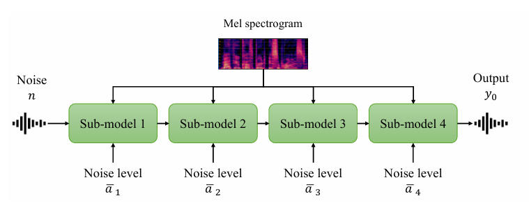- 추론 시에는 mel-spectrogram과 해당 noise level $\bar{a}$가 각 sub-model의 input으로 제공됨