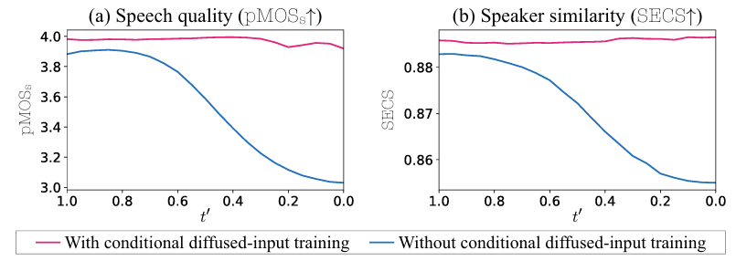 - Conditional diffused-input training을 활용하면 $t'$에 대한 robustness를 향상할 수 있음