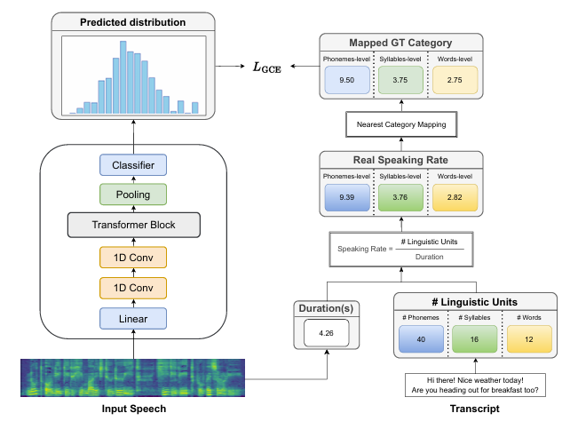 - 최종적으로 classifier는 speaking rate category에 대한 class probability를 output 함