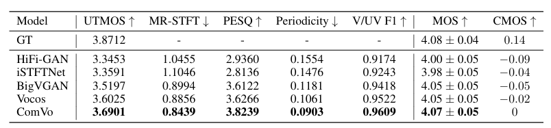 - Subjective evaluation 측면에서도 ComVo가 가장 뛰어남