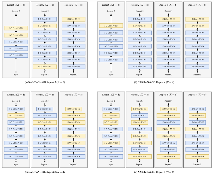 - Conv-TasNet의 성능을 극대화하기 위해 Neural Architecture Search를 도입할 수 있음
