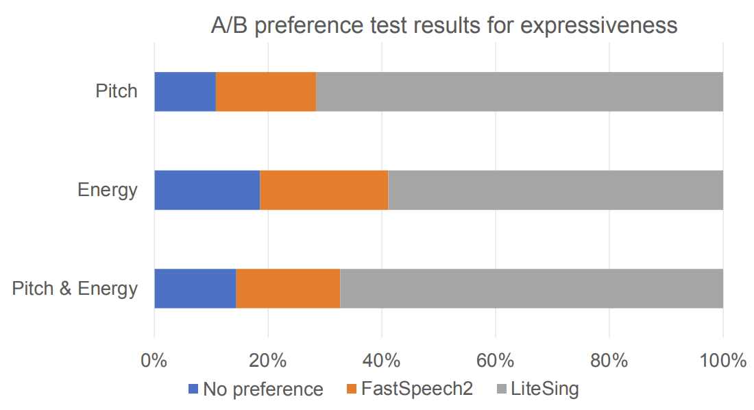 - FastSpeech2와 비교했을 때, LiteSing은 모델 size와 추론 속도 측면에서 압도적임