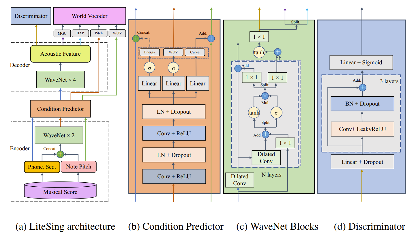 - LiteSing은 WaveNet을 architecture의 핵심 block으로써 사용함