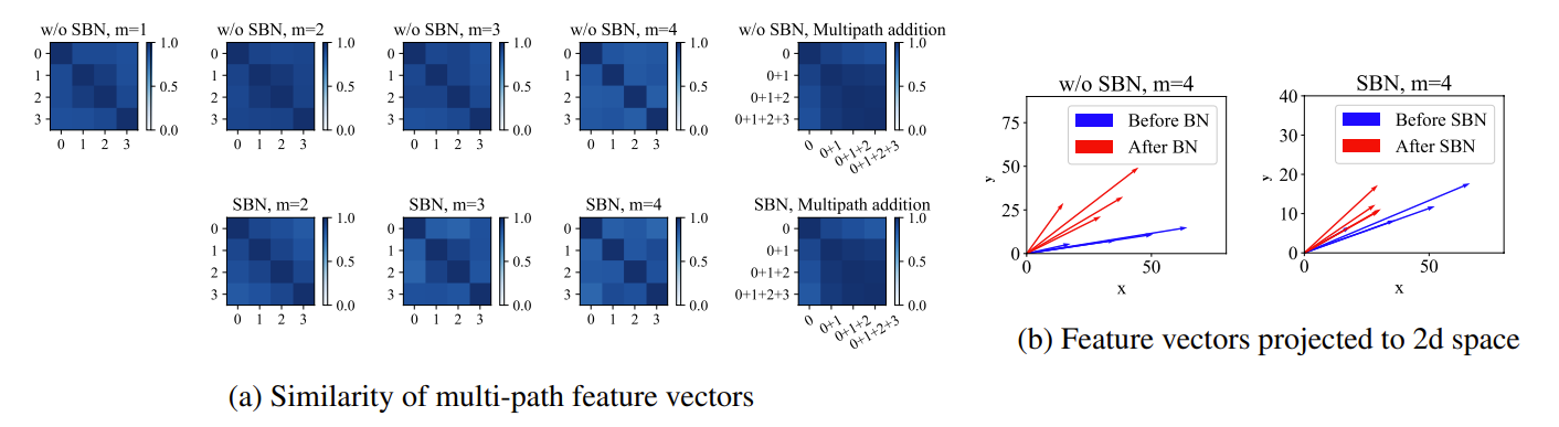 - Activated path combination을 shadow처럼 따르므로, 이를 Shadow Batch Normalization (SBN)이라고 함 - Multi-path setting에서 모든 feature combination을 regularize 하기 위해서는 SBN 수가 exponential 하게 증가해야 함