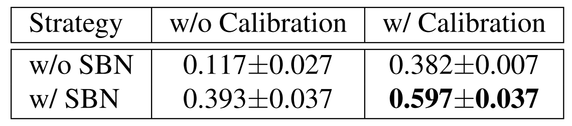 - SBN과 BN post-calibration을 모두 사용하는 경우 0.597까지 성능이 향상됨