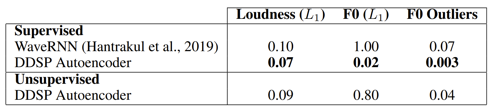 - Unsupervised DDSP autoencoder는 $F_{0}$를 network의 나머지 부분과 함께 jointly learning