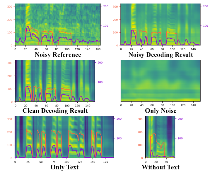 모든 noise-independent encoding을 사용하여 clean mel-spectrogram을 예측 - Noisy decoding은: