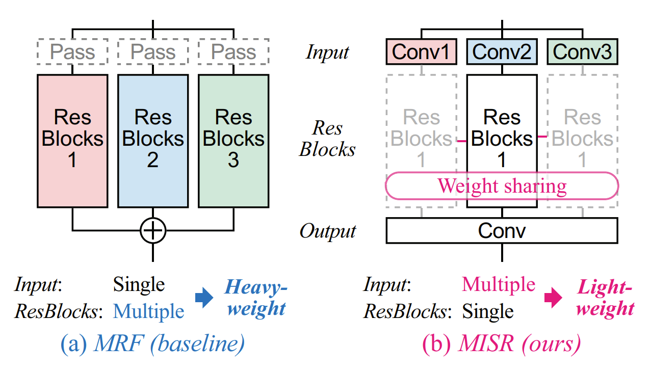 -> 그래서 MRF를 경량화한 Multi-Input Single Shared Residual (MISR) block을 사용하는 MISRNet을 제안